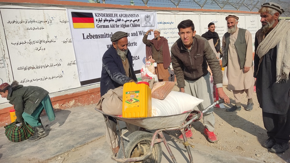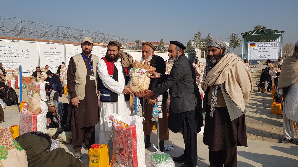 جرمنې مرستې د افغان ماشومانو لپاره ادارې (۳۵۰) غذايې بستې د کونډو، معیوبینو او اړمنو کورنیو په ګډون هغو کورنیو ته چې د اقتصادي ستونزو له امله خورا زیانمني شوي وي د خپلو رضاکارانو او د حوادثو ریاست ولایتي ادارې په ګډه همکارۍ وویشلي، هره بسته کې  ۵۰ کیلو ګرامه غنم، ۱۰ کیلوګرامه وریجې، ۱۰ لیتره غوړي، ۳.۵ کیلو ګرامه لوبیا، ۳.۵ کیلو ګرامه بوره، او ۵۰۰ ګرامه شین چای موجود وو