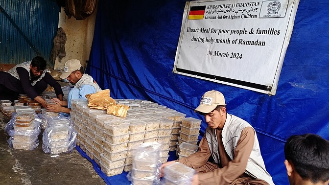 د لومړۍ تر دیرشمي روژې پورې د تیار پخ شوي خوړو بستی د جلال اباد ښار په مختلفو ساحو کې د اړمنو کورنیو لپاره ووېشل شوې. د نورو مرستو تر څنګ جرمني مرستې ماشومانو لپاره ادارې د روژې په مبارکه میاشت کې هره ورځ اړمنو کورنیو ته د پخو شوو خوړو کڅوړې برابروي، چې هره ورځ له ۰۰۵ څخه زیاتو کسانو ته رسېدي. په یاده کڅوړه کې قابلي وریجې، د غوښې او کچالو سالن، پخې شوې سبزیانې، ډوډۍ او خرما شاملې دي.